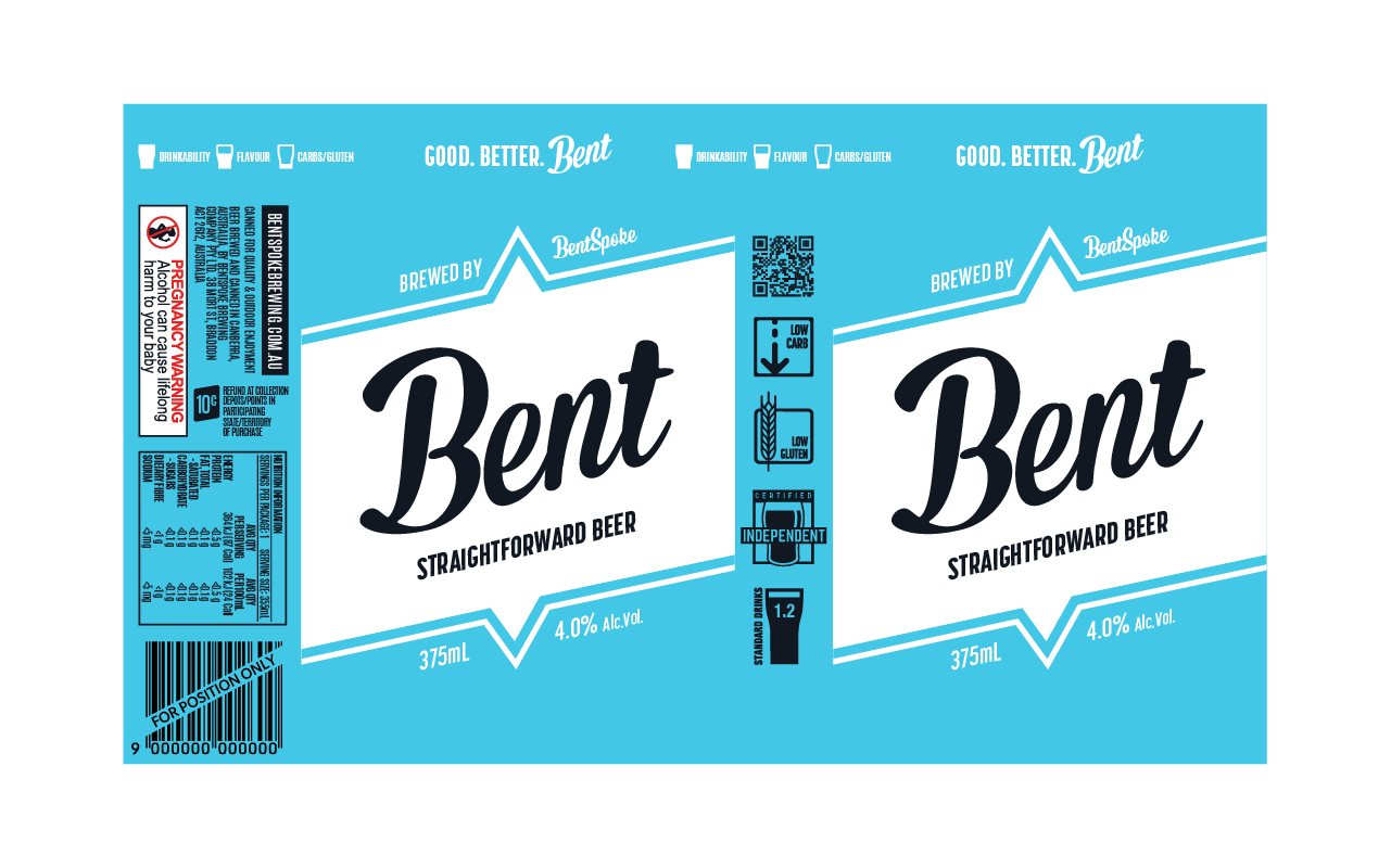 Designing Bentspoke Brewery’s Bent can was a gratifying project. The nostalgic light blue color scheme adds a vintage touch with a modern twist. Drawing inspiration from retro car designs, I incorporated sleek lines and dynamic layouts, resulting in a beer can design I’m proud to feature in my portfolio.