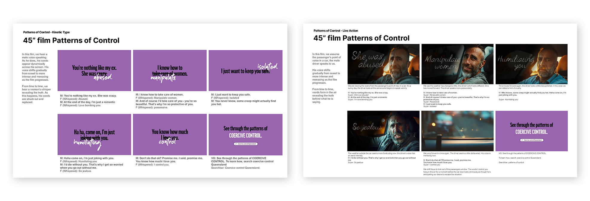 As Art Director on this powerful awareness campaign for the Queensland Government, I worked closely with the creative team to craft a compelling visual narrative that sheds light on the subtle and damaging nature of coercive control in relationships.