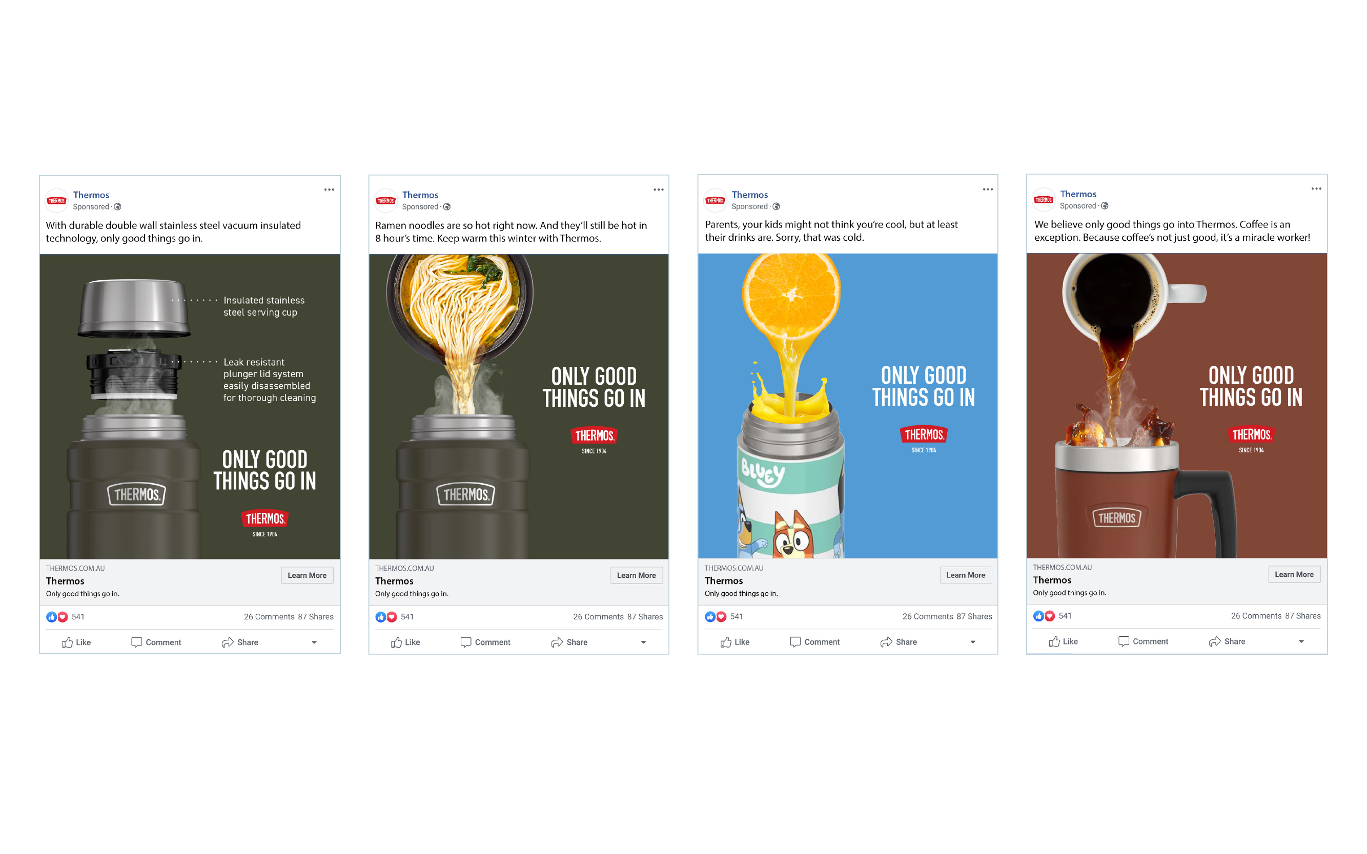 Created Social, Meta and TikTok ad campaigns for Thermos built on the idea that we only put good things into a Thermos, just as Thermos only puts good things into making its products. The campaign celebrated simplicity, honesty, trust and values that have defined the brand for over 120 years.